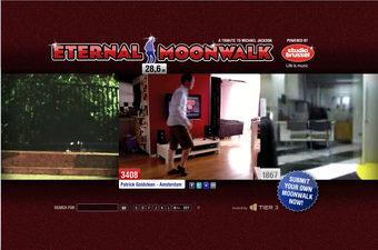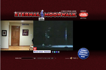 Eternal moonwalk - A tribute to michael jacksonは、その名の通りムーンウォーク画像がとめどなく流れるWebサービスです。とはいえ、マイケル・ジャクソンがムーンウォークをしている画像がずっと流れている訳ではありません。このサイトのメインは、一般人のムーンウォークの数珠つなぎです。ホームビデオで撮影・投稿された世界中の人々のムーンウォーク動画が、右から左へ美しくリレーしていきます。