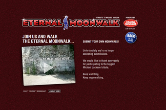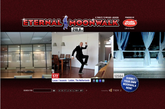 Eternal moonwalk - A tribute to michael jacksonは、ひたすらムーンウォーク画像をつなげた面白Webサイトです。動画は誰でも投稿できるので、自分もリレーに入りたい!という方はルールに則って投稿してみてはいかがでしょうか。